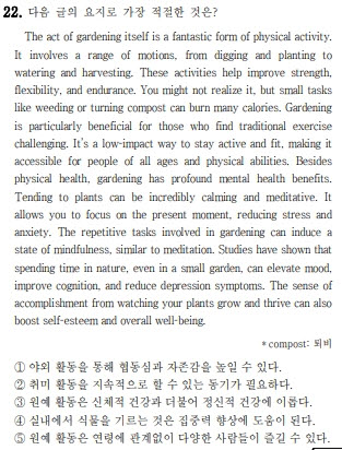 ⑤ Gardening can be enjoyed regardless of age. — 원예는 연령과 무관하게 즐길 수 있다.